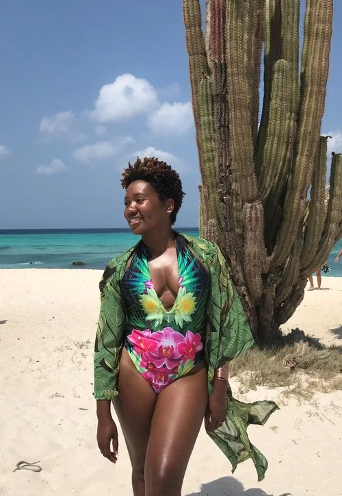 The layering piece. Once I'm dressed, I love adding another piece to give my look that extra umph. In this case, it is this beautiful & vibrant palm print kimono that I just added to the shop. While I loved this monochrome romper all on its own, adding the pop of color (& you know me, it's a second print, which is an added bonus!) made me love it that much more. It was perfect for the intense Aruba sun and I loved that it would catch the wind just right for the perfect dramatic photo (because really, that's what it's all about, right?).